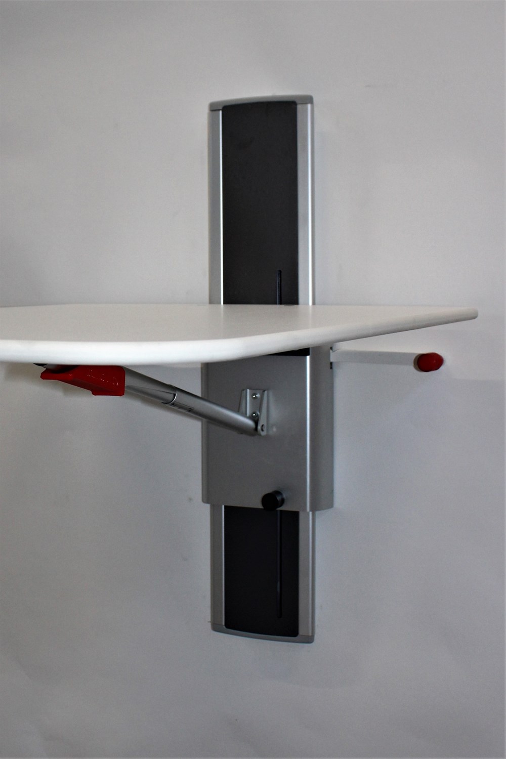 Det lille klapbord er optimalt til arbejdsfunktioner og opgaver, som ikke skal udføres hele arbejdsdagen. Bordet kan nemlig meget nemt klappes sammen, så det flugter langs væggen. Det er designet som inventar til hospitaler og sygehuse, da bordet gør det muligt at have en fleksibel arbejdsplads, der kun fylder, når den benyttes og er udslået.